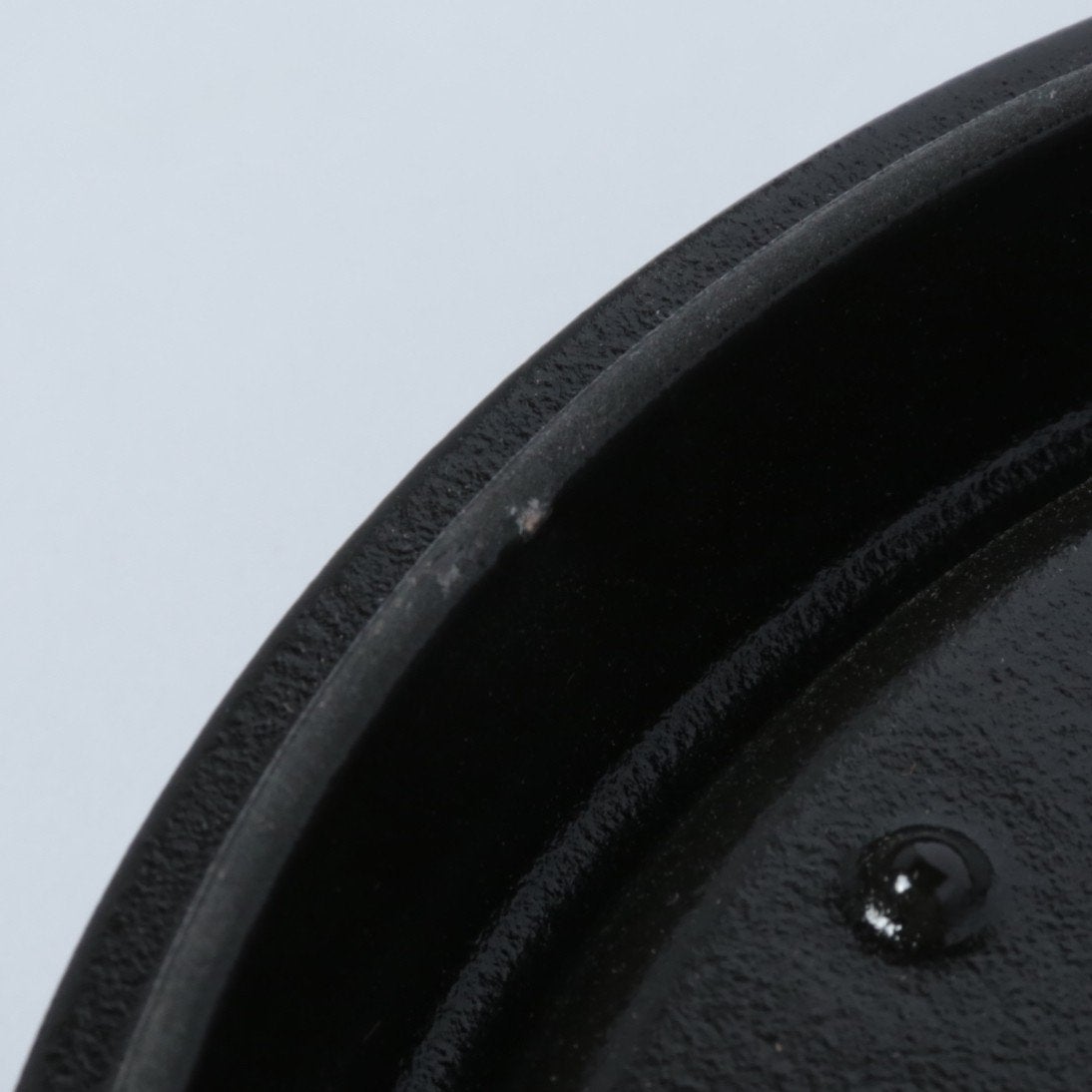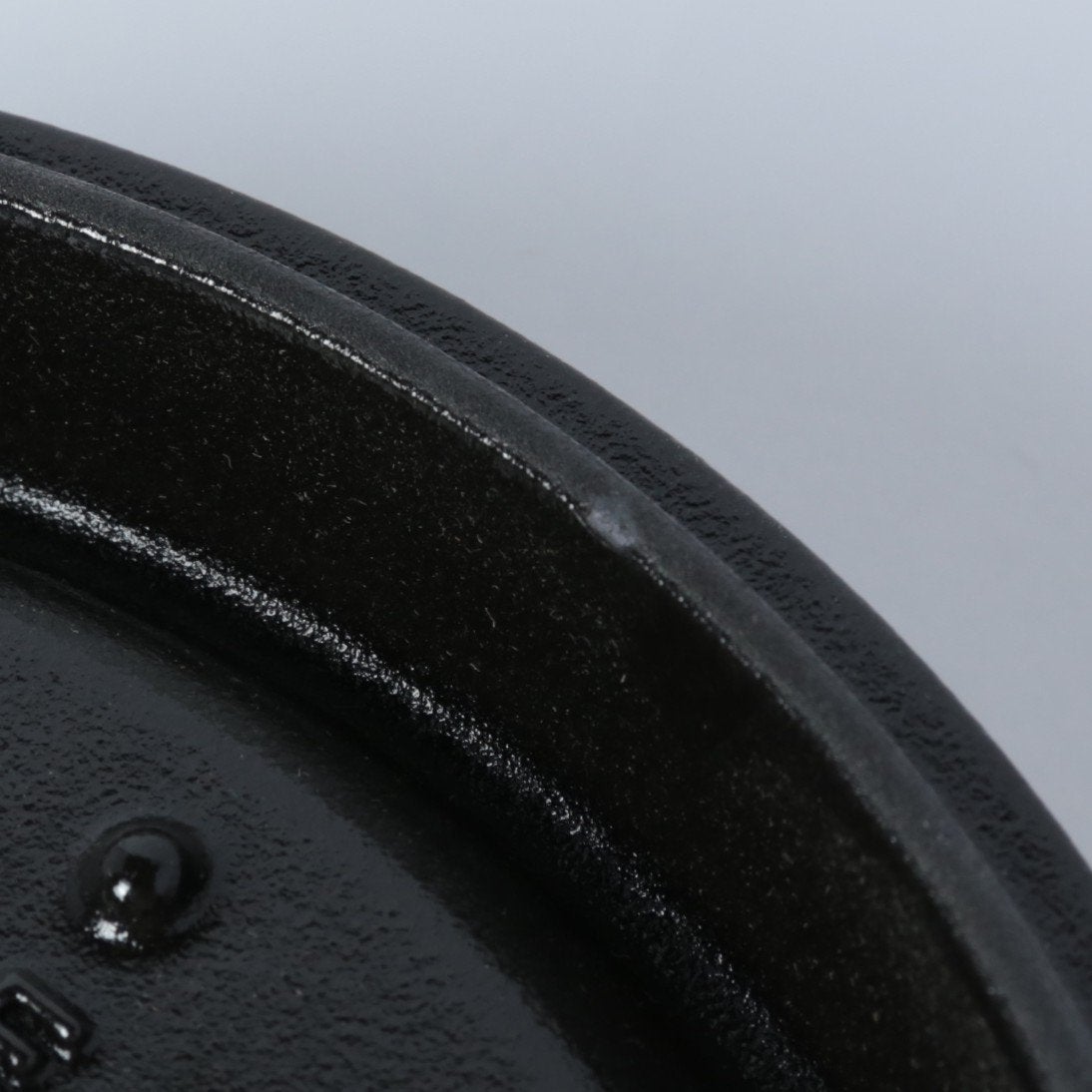 黒マットエマイユ加工:内部はストウブ独自のザラザラ加工。細かな凹凸によって表面積が増えるため油なじみがよく、食材の接点が少なくなり焦げ付きにくくなります。