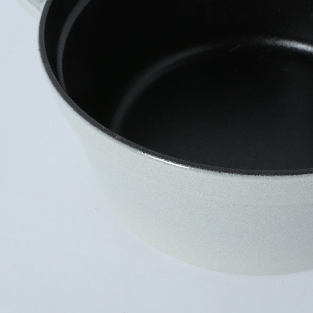 黒マットエマイユ加工:内部はストウブ独自のザラザラ加工。細かな凹凸によって表面積が増えるため油なじみがよく、食材の接点が少なくなり焦げ付きにくくなります。