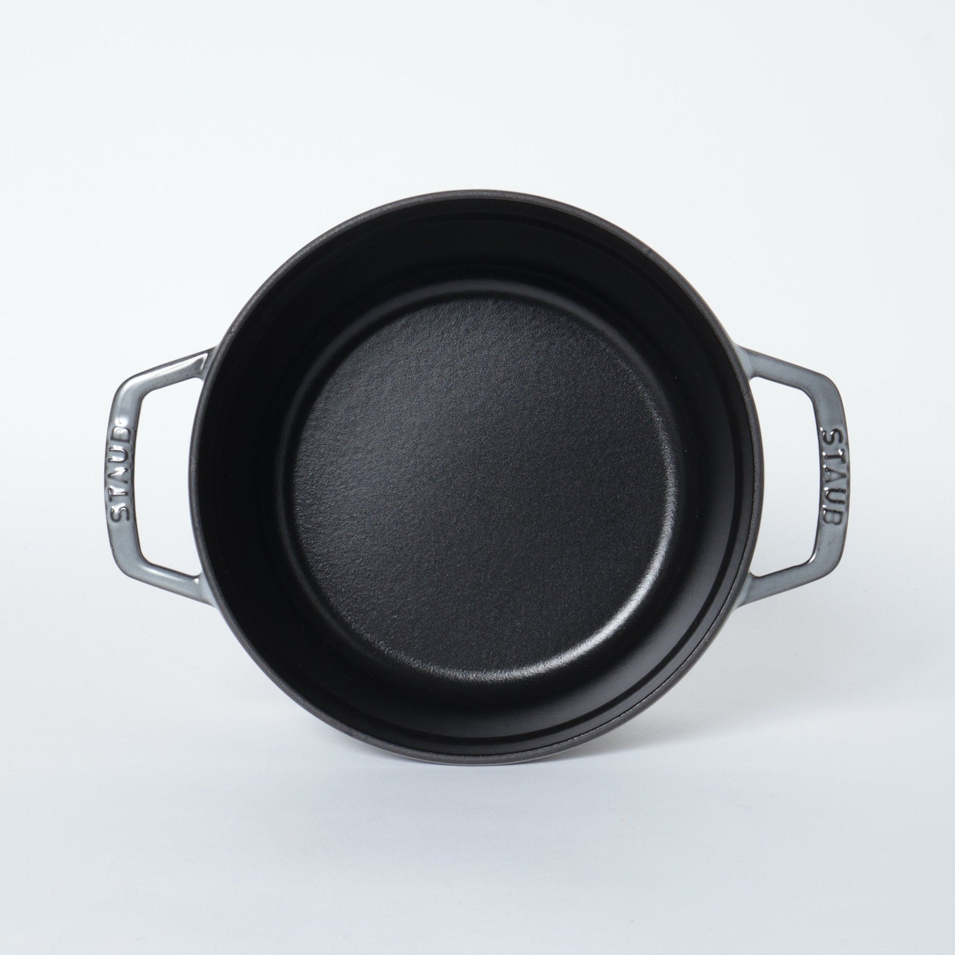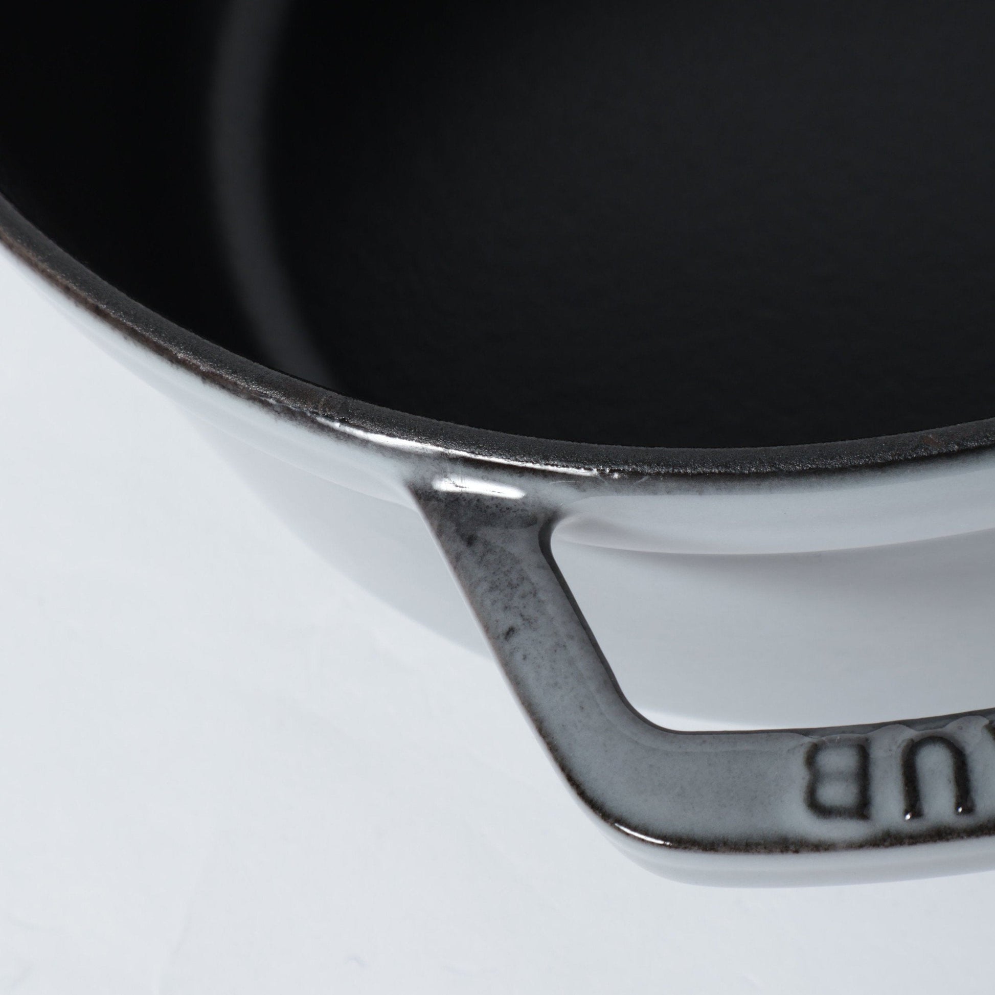 黒マットエマイユ加工:内部はストウブ独自のザラザラ加工。細かな凹凸によって表面積が増えるため油なじみがよく、食材の接点が少なくなり焦げ付きにくくなります。
