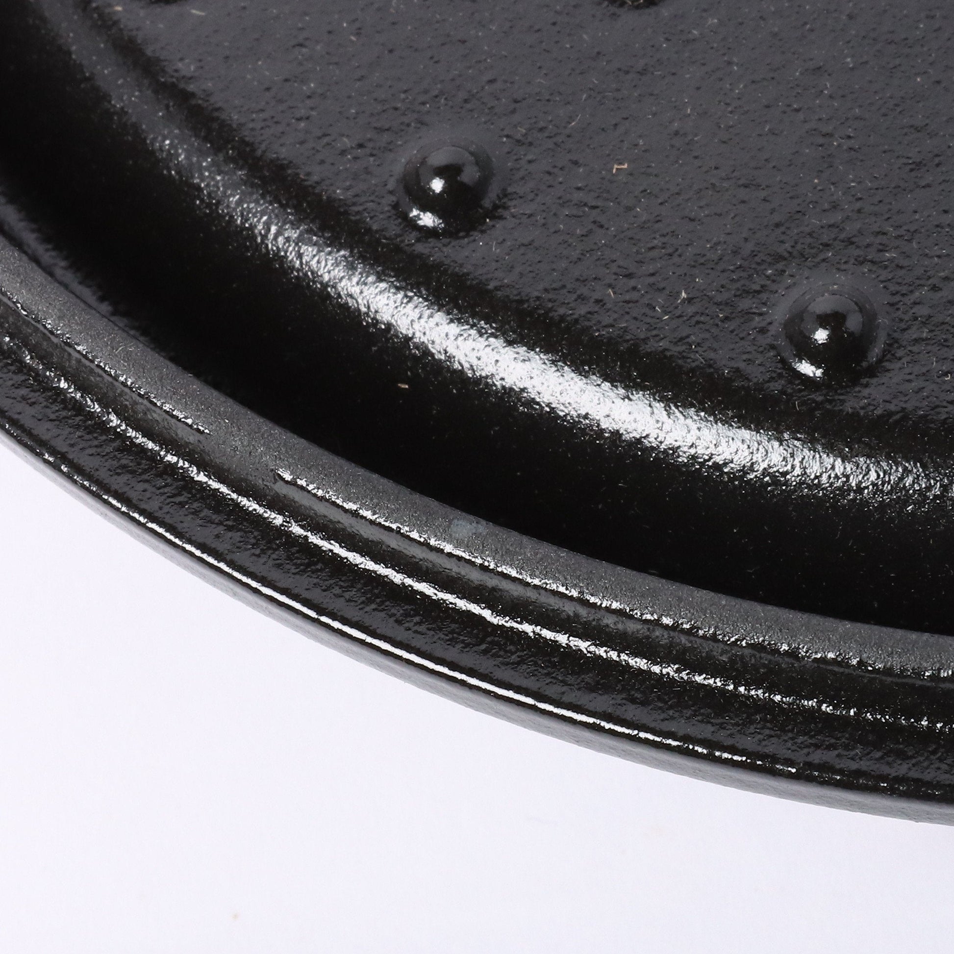 台に載せてエマイユ(ほうろう)加工を施すため、本体の縁や蓋裏に加工時の跡が薄く残ることがありますが、品質に問題なく、ご使用上の支障はございません。