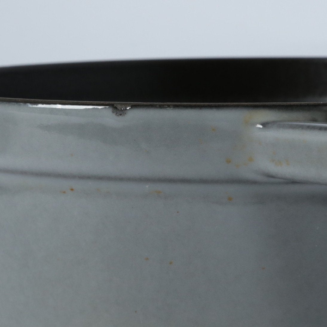 台に載せてエマイユ(ほうろう)加工を施すため、本体の縁や蓋裏に加工時の跡が薄く残ることがありますが、品質に問題なく、ご使用上の支障はございません。