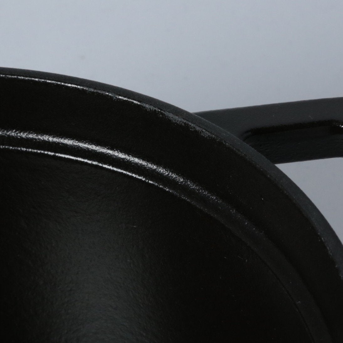 黒マットエマイユ加工:内部はストウブ独自のザラザラ加工。細かな凹凸によって表面積が増えるため油なじみがよく、食材の接点が少なくなり焦げ付きにくくなります。