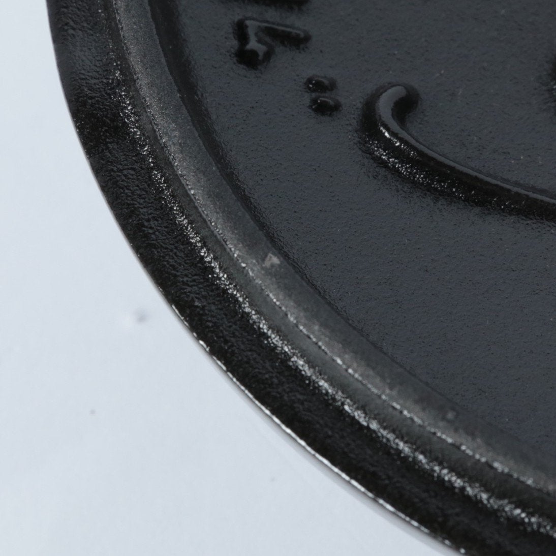 台に載せてエマイユ(ほうろう)加工を施すため、本体の縁や蓋裏に加工時の跡が薄く残ることがありますが、品質に問題なく、ご使用上の支障はございません。