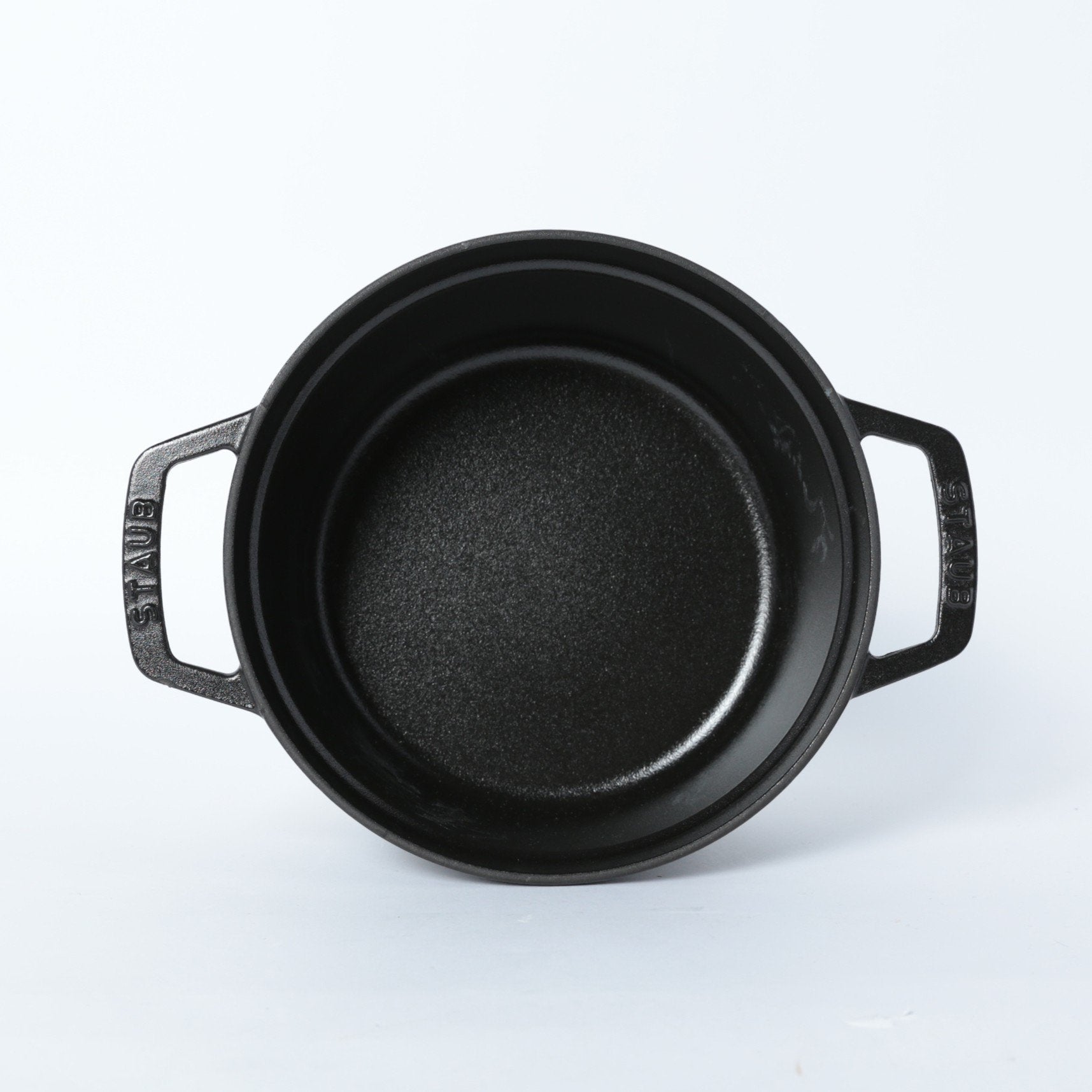 黒マットエマイユ加工:内部はストウブ独自のザラザラ加工。細かな凹凸によって表面積が増えるため油なじみがよく、食材の接点が少なくなり焦げ付きにくくなります。