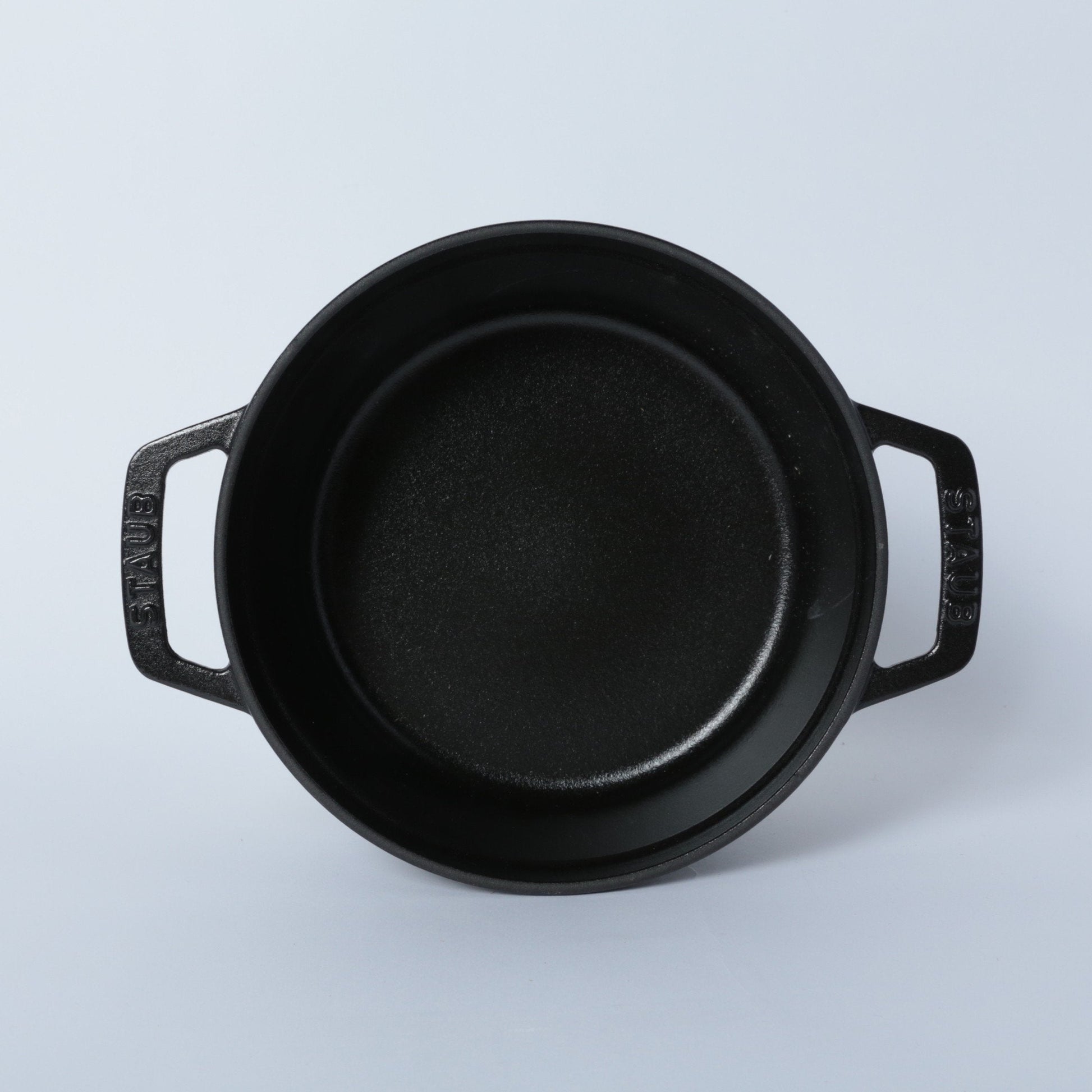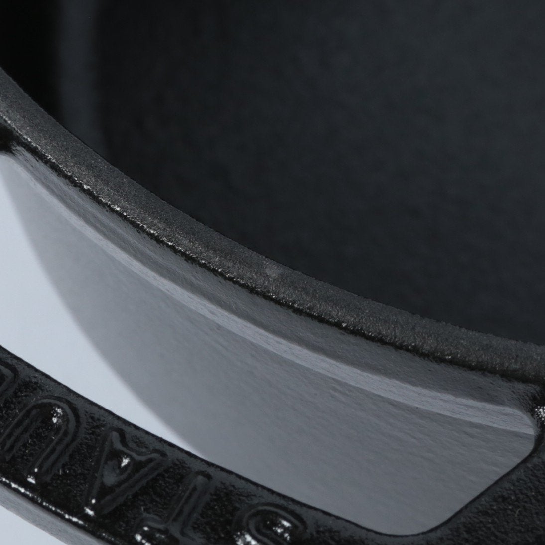 黒マットエマイユ加工:内部はストウブ独自のザラザラ加工。細かな凹凸によって表面積が増えるため油なじみがよく、食材の接点が少なくなり焦げ付きにくくなります。
