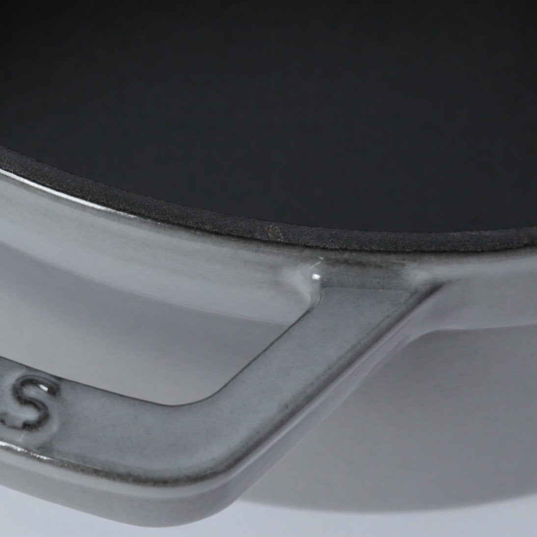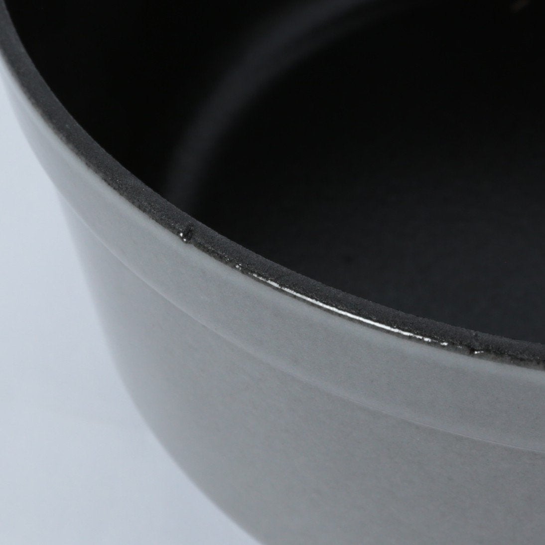 黒マットエマイユ加工:内部はストウブ独自のザラザラ加工。細かな凹凸によって表面積が増えるため油なじみがよく、食材の接点が少なくなり焦げ付きにくくなります。
