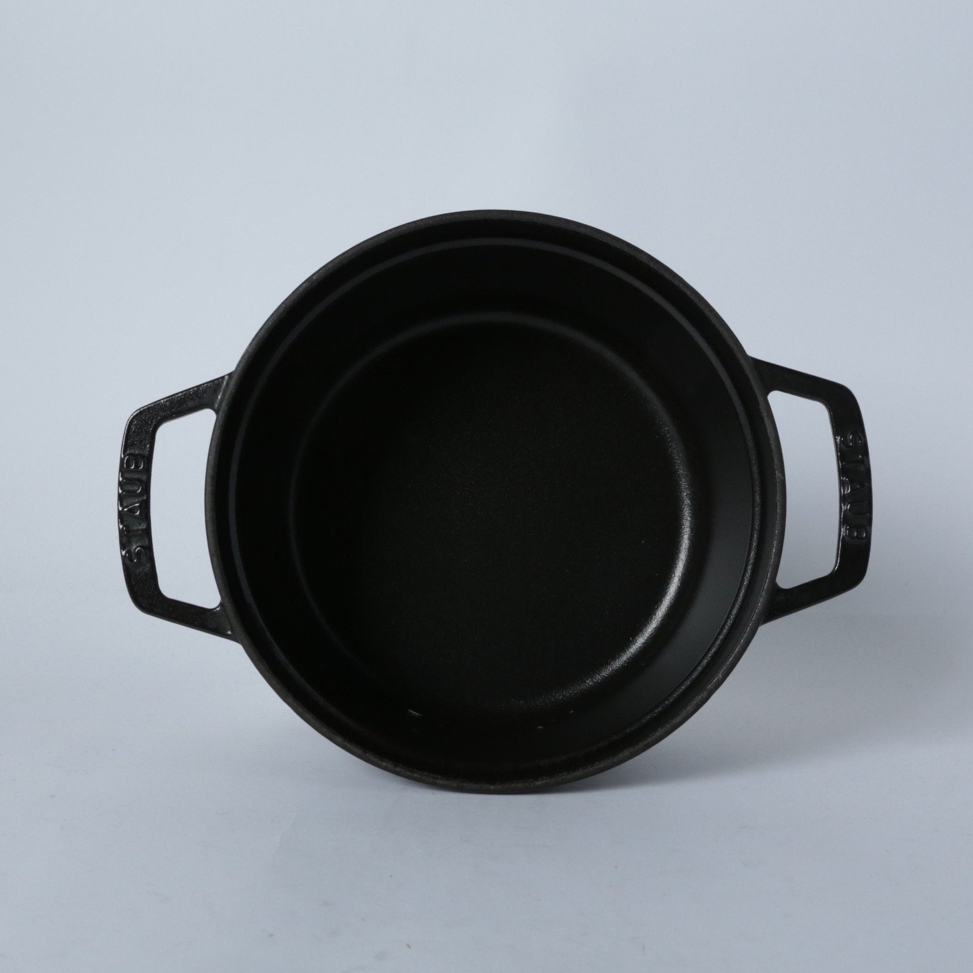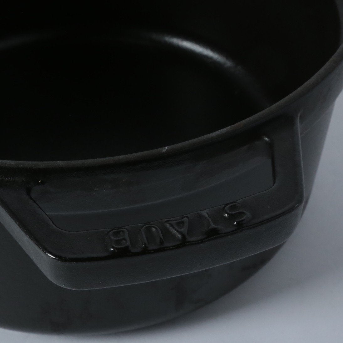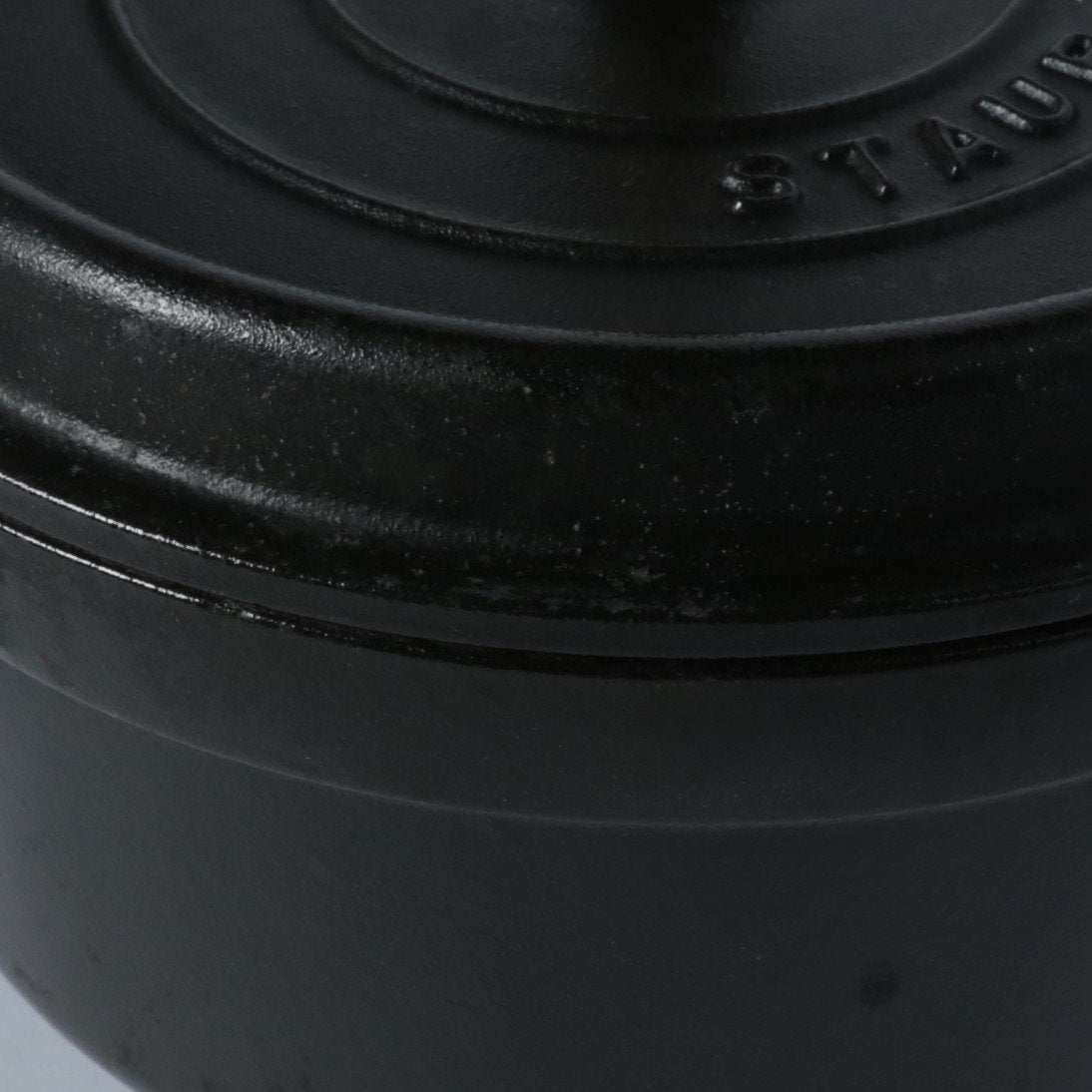 黒マットエマイユ加工:内部はストウブ独自のザラザラ加工。細かな凹凸によって表面積が増えるため油なじみがよく、食材の接点が少なくなり焦げ付きにくくなります。
