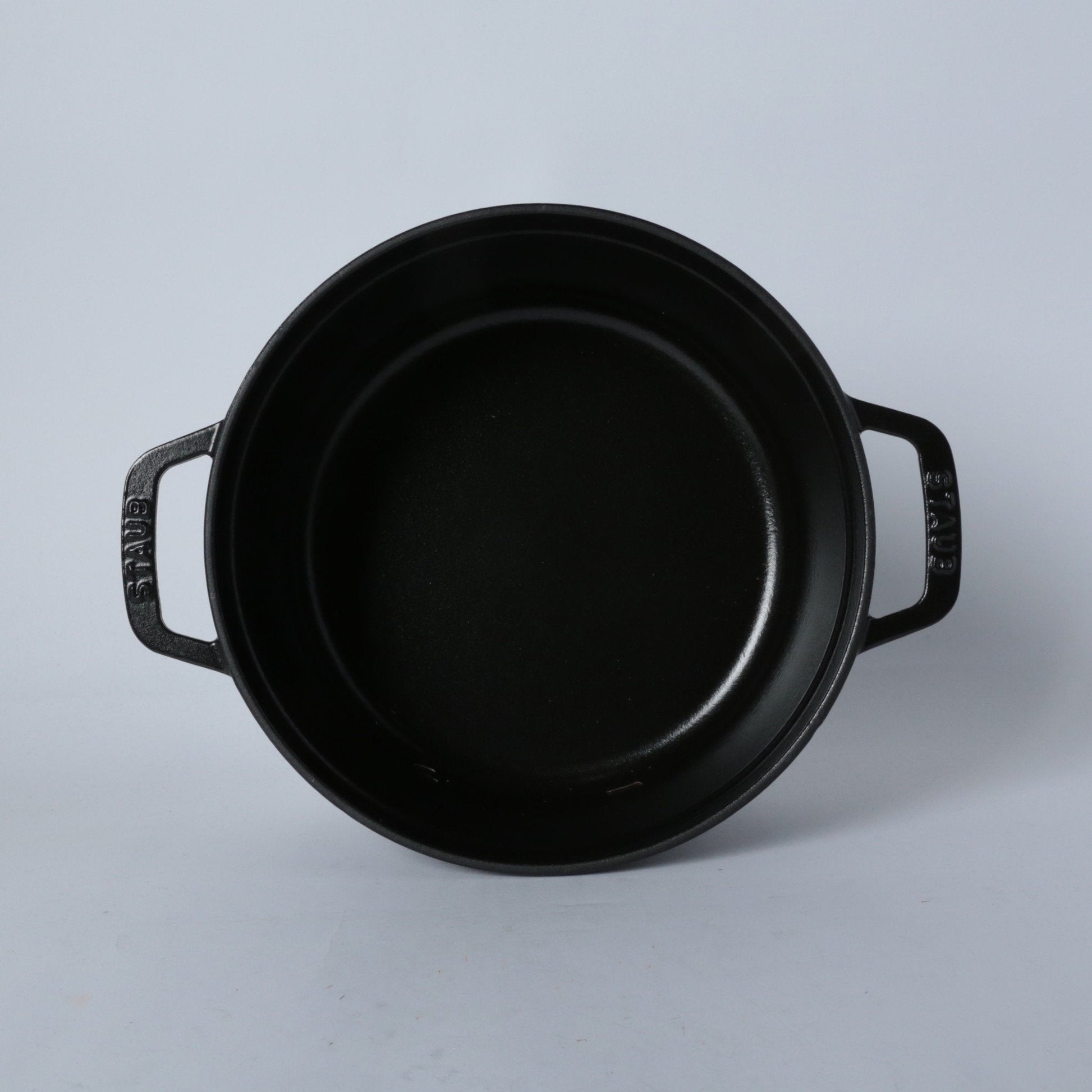 ストウブのベーシックな鍋。煮込み・炒め物など日常使いで大活躍。美しいラウンドのフォルムは長年使っても飽きがきません。