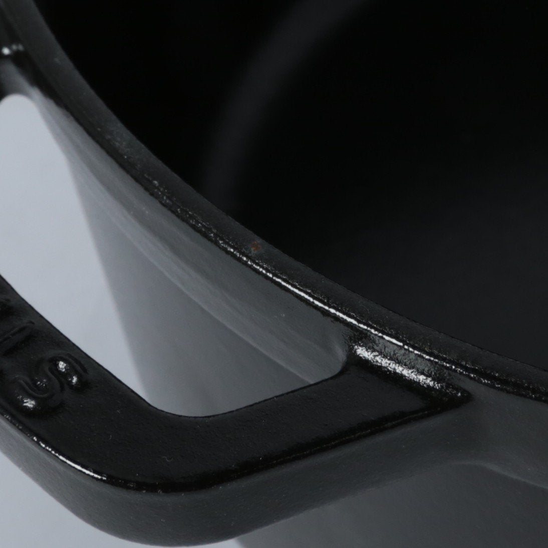 黒マットエマイユ加工:内部はストウブ独自のザラザラ加工。細かな凹凸によって表面積が増えるため油なじみがよく、食材の接点が少なくなり焦げ付きにくくなります。