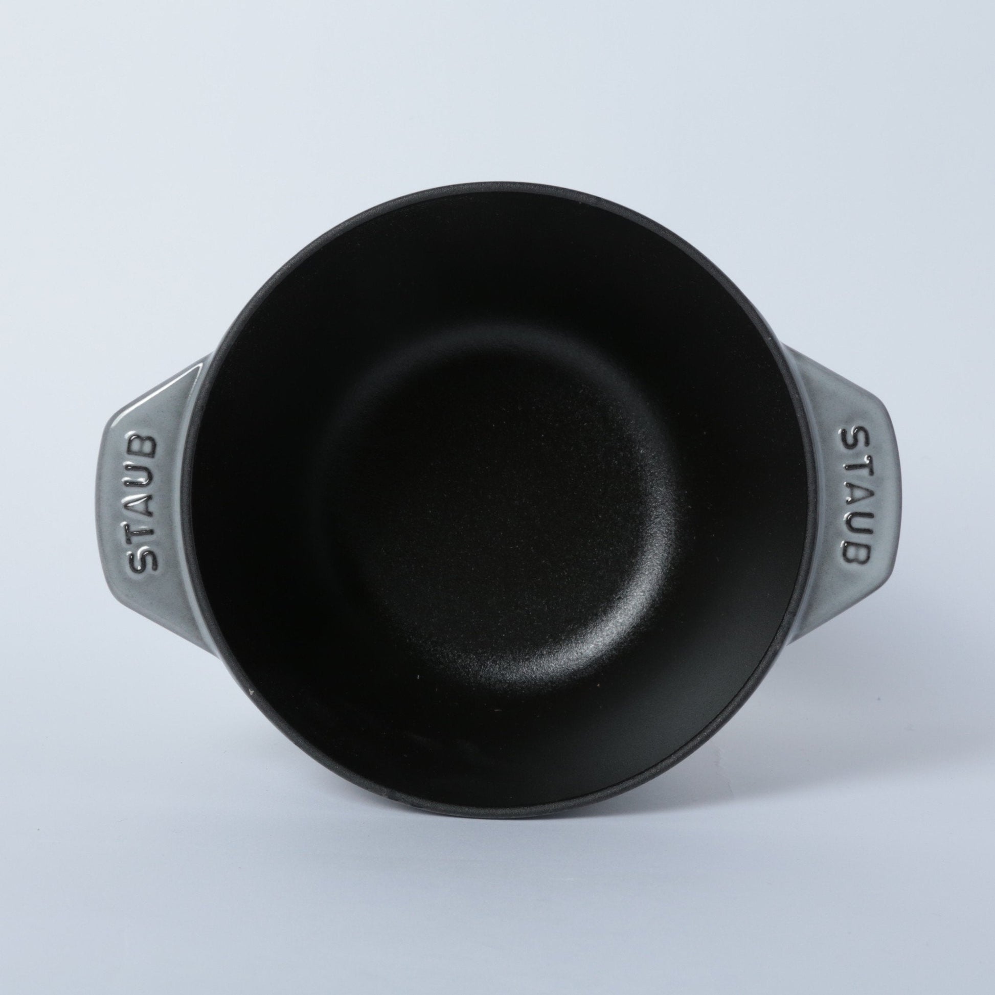 黒マットエマイユ加工:内部はストウブ独自のザラザラ加工。細かな凹凸によって表面積が増えるため油なじみがよく、食材の接点が少なくなり焦げ付きにくくなります。
