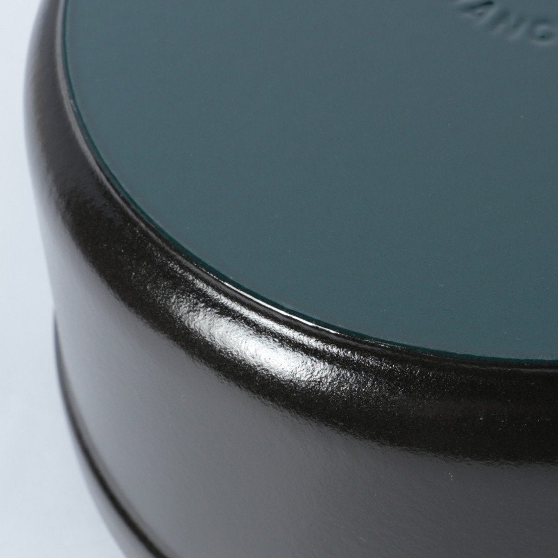 台に載せてエマイユ(ほうろう)加工を施すため、本体の縁や蓋裏に加工時の跡が薄く残ることがありますが、品質に問題なく、ご使用上の支障はございません。