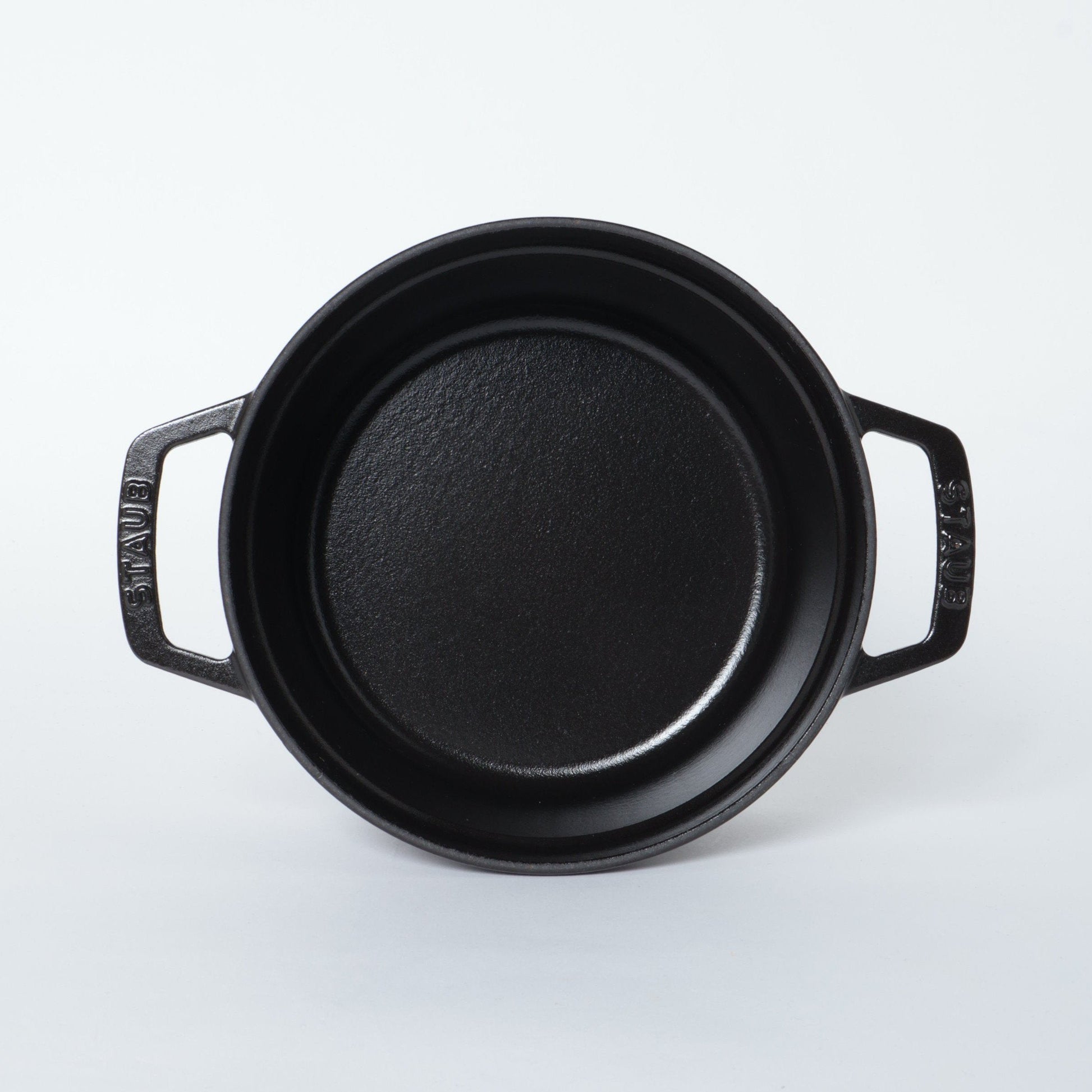 黒マットエマイユ加工:内部はストウブ独自のザラザラ加工。細かな凹凸によって表面積が増えるため油なじみがよく、食材の接点が少なくなり焦げ付きにくくなります。