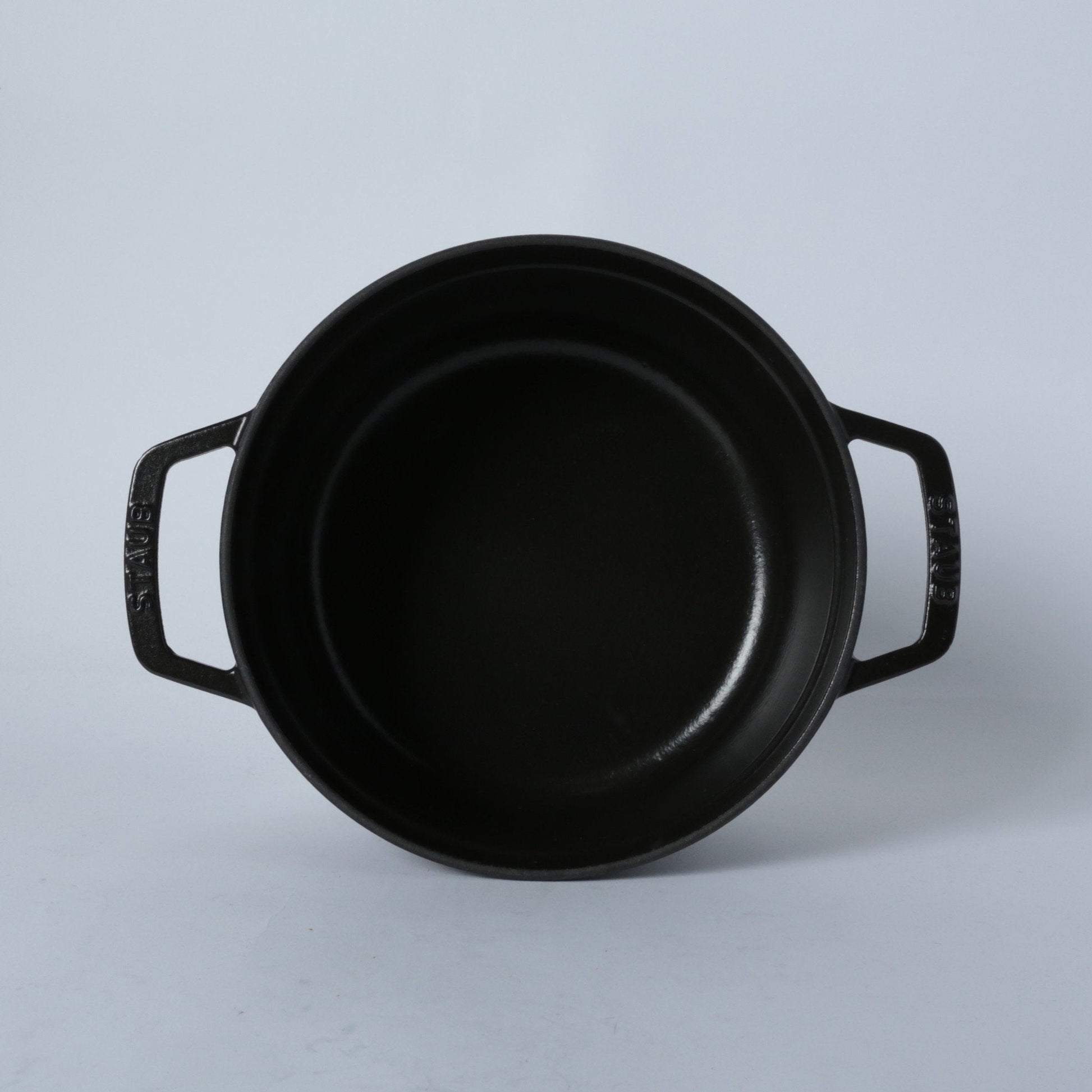 ストウブのベーシックな鍋。煮込み・炒め物など日常使いで大活躍。美しいラウンドのフォルムは長年使っても飽きがきません。