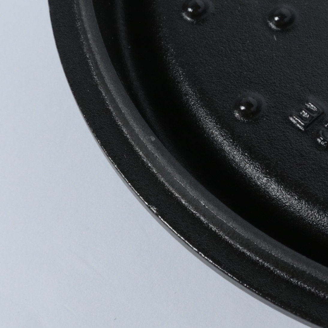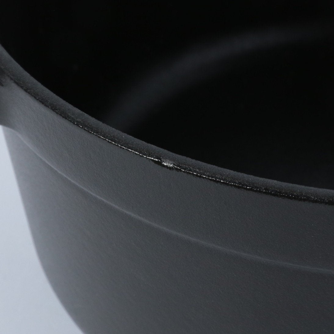 黒マットエマイユ加工:内部はストウブ独自のザラザラ加工。細かな凹凸によって表面積が増えるため油なじみがよく、食材の接点が少なくなり焦げ付きにくくなります。