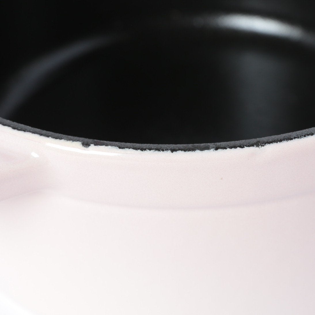 台に載せてエマイユ(ほうろう)加工を施すため、本体の縁や蓋裏に加工時の跡が薄く残ることがありますが、品質に問題なく、ご使用上の支障はございません。