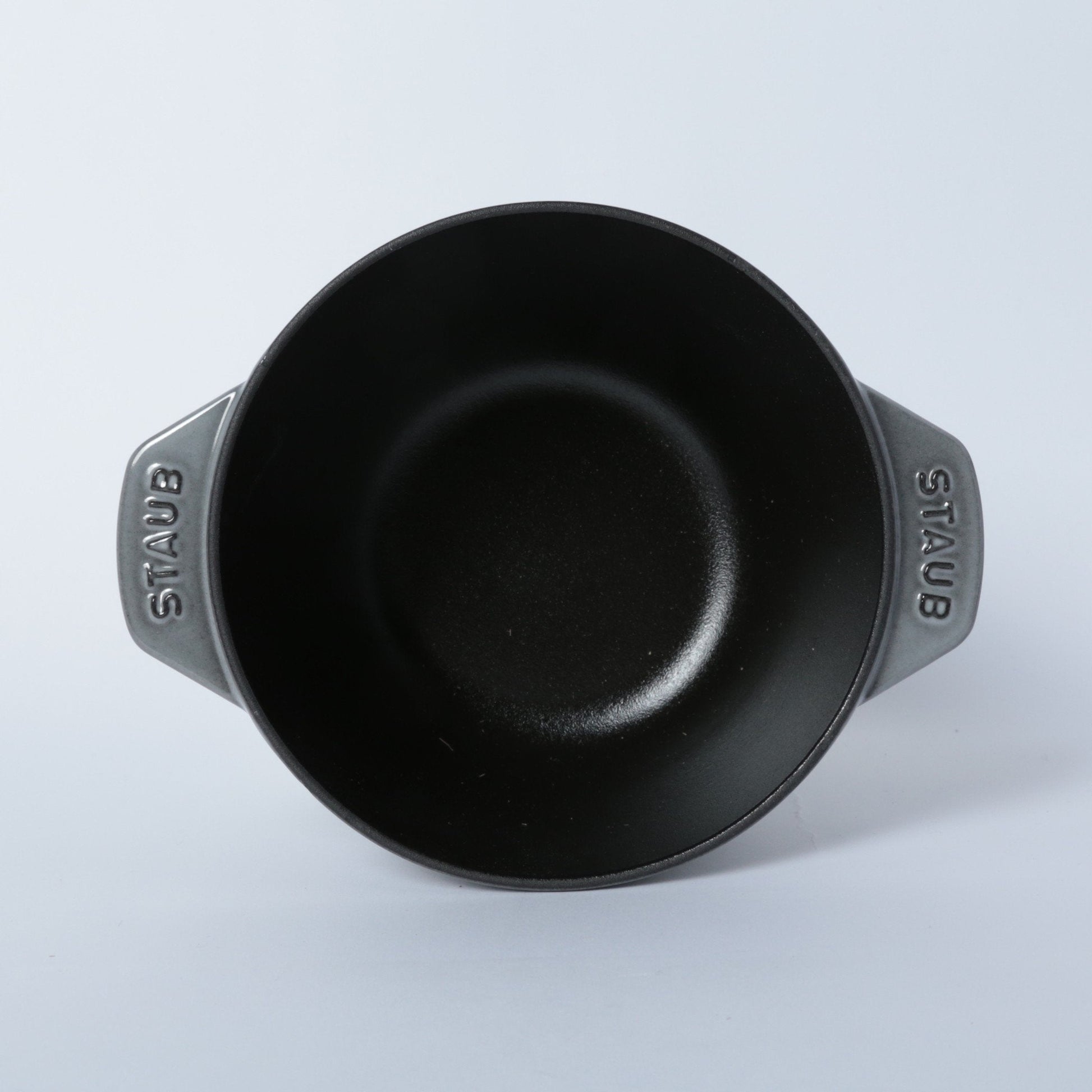 黒マットエマイユ加工:内部はストウブ独自のザラザラ加工。細かな凹凸によって表面積が増えるため油なじみがよく、食材の接点が少なくなり焦げ付きにくくなります。