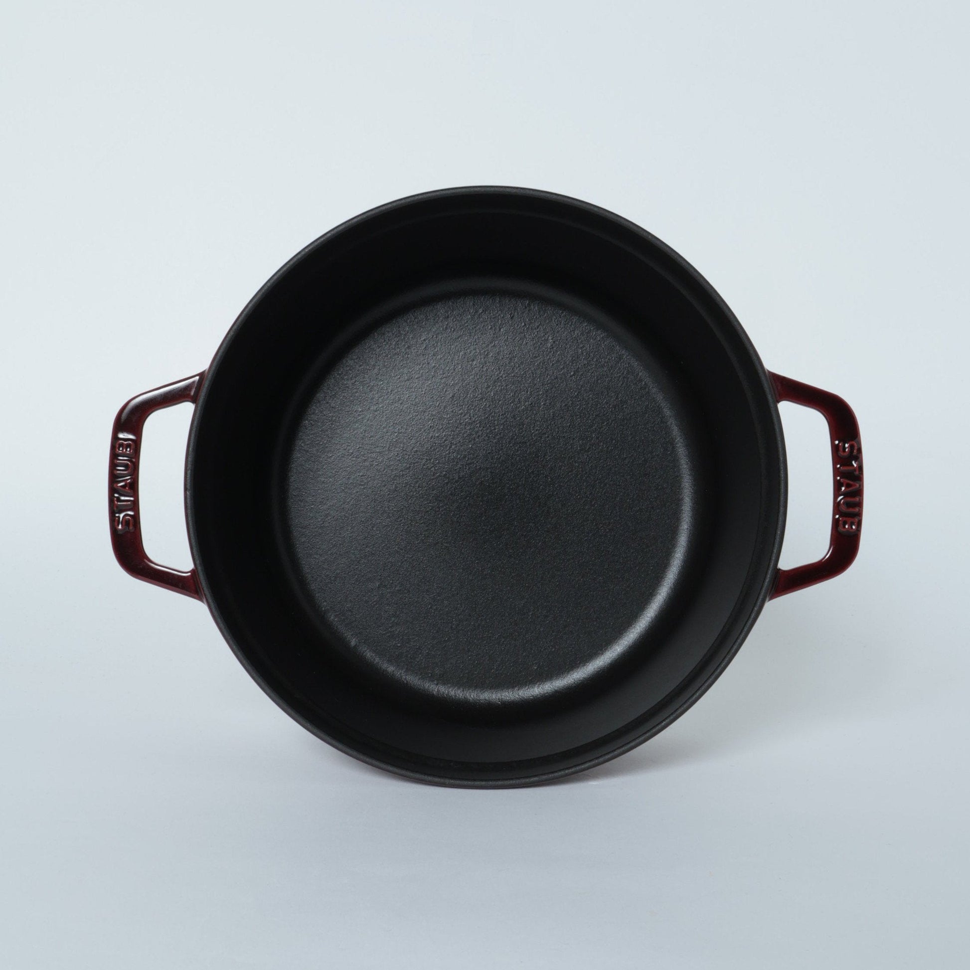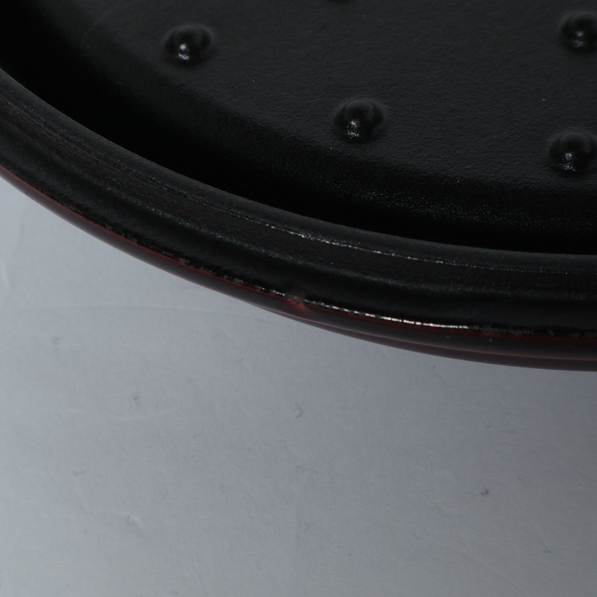 黒マットエマイユ加工:内部はストウブ独自のザラザラ加工。細かな凹凸によって表面積が増えるため油なじみがよく、食材の接点が少なくなり焦げ付きにくくなります。
