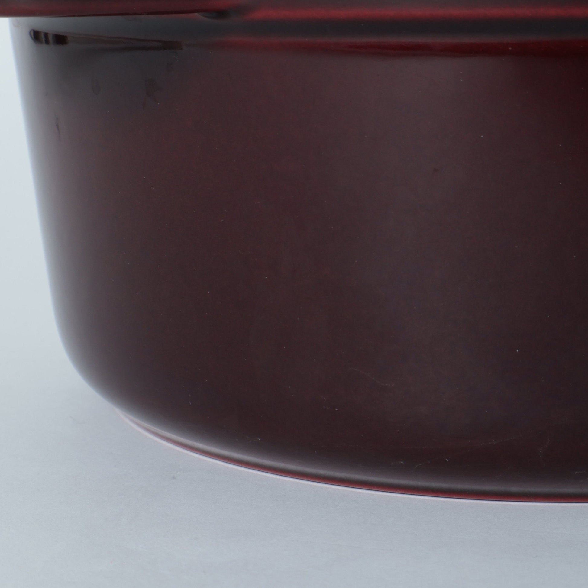 台に載せてエマイユ(ほうろう)加工を施すため、本体の縁や蓋裏に加工時の跡が薄く残ることがありますが、品質に問題なく、ご使用上の支障はございません。
